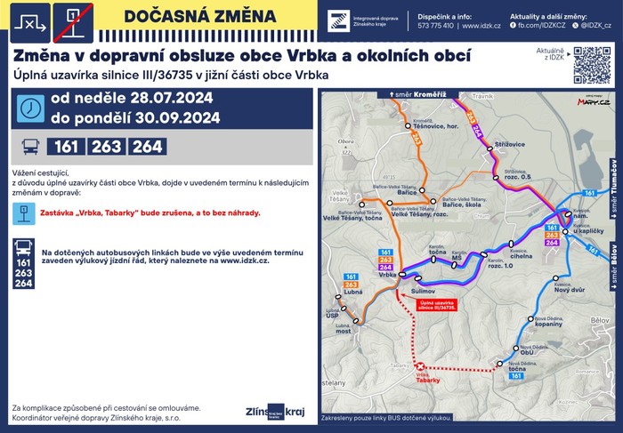 Vážení občané, z důvodu uzavírky silnice Vrbka - Tabarky, dochází ke změně linky autobusů. Více najdete v příloze této zprávy v přiložené grafice.