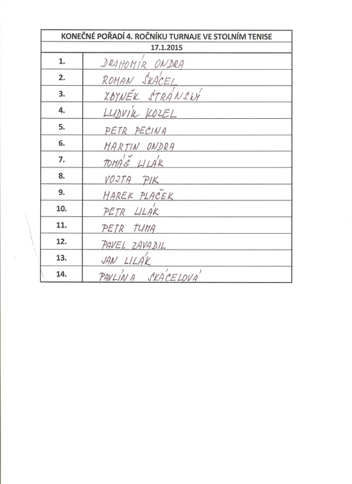 SK Karolín pořádalo v sobotu 17.1.2015 hned od ranních hodit turnaj v pink ponku. Celkem se zúčastnilo 14 hráčů a každý si užil pohodovou sobotní "soutěžní" atmosféru. Konečné pořadí naleznete ve fotogalerii.
